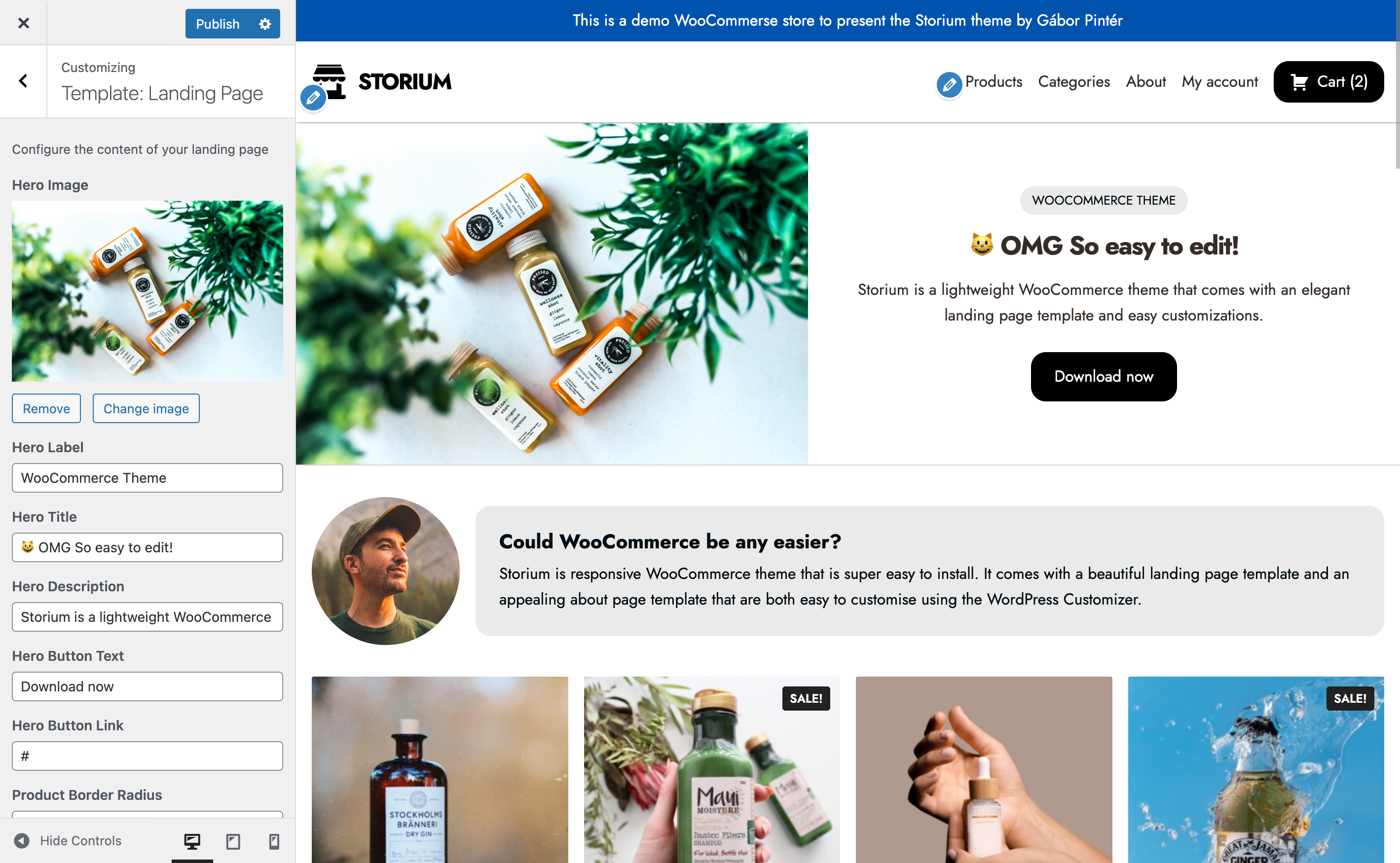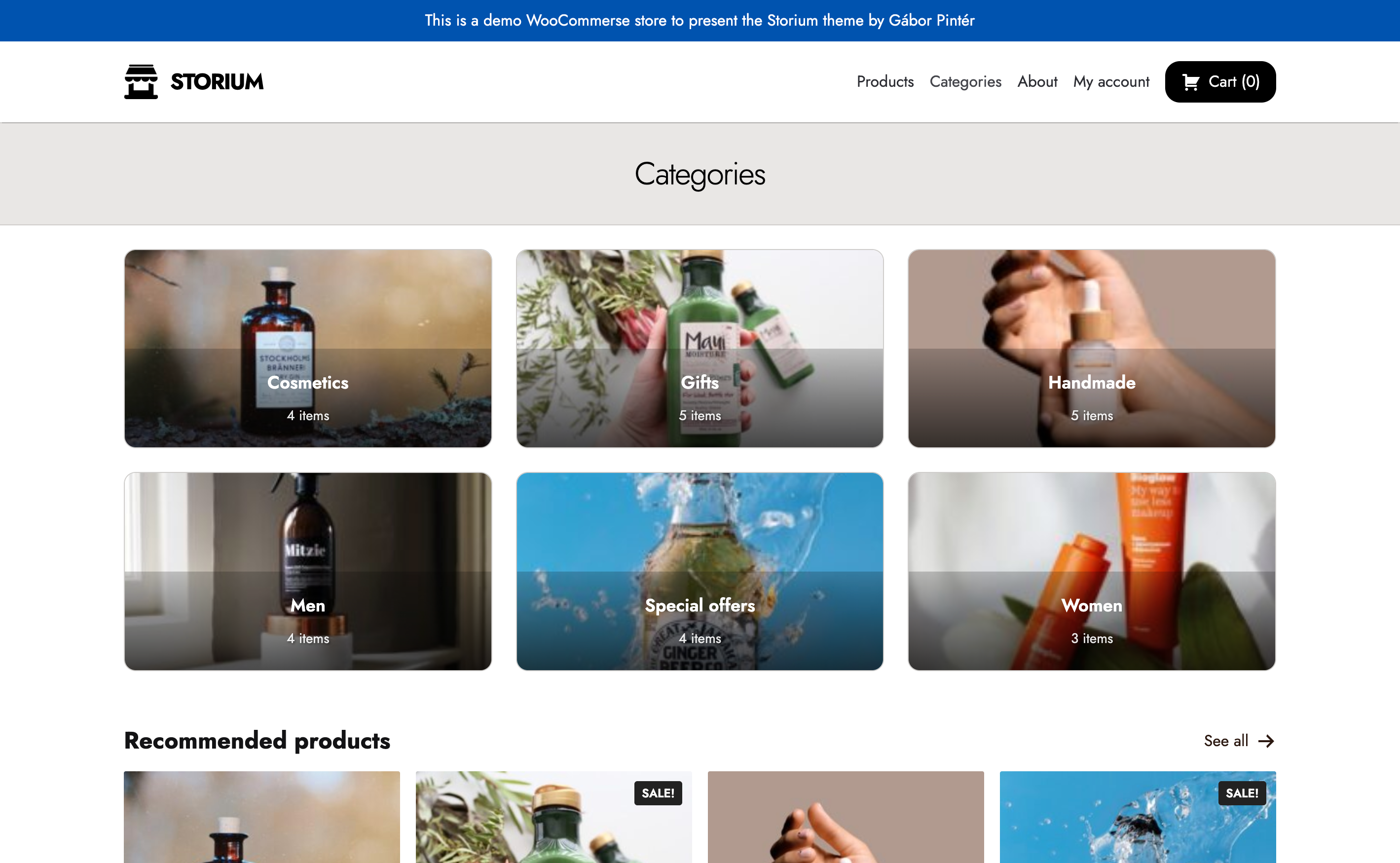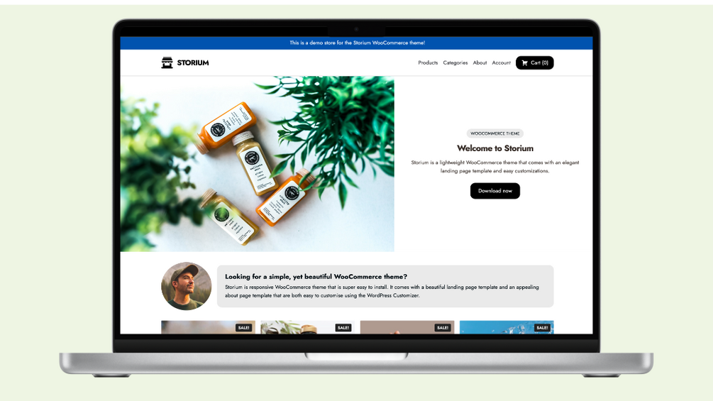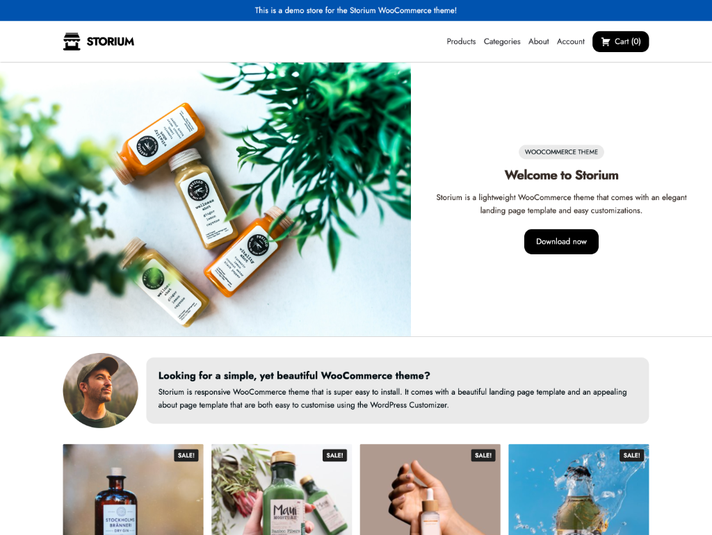 Storium is a super simple WooCommerce theme that includes a beautiful landing page template, an appealing about page template and a minimalistic categories page template.